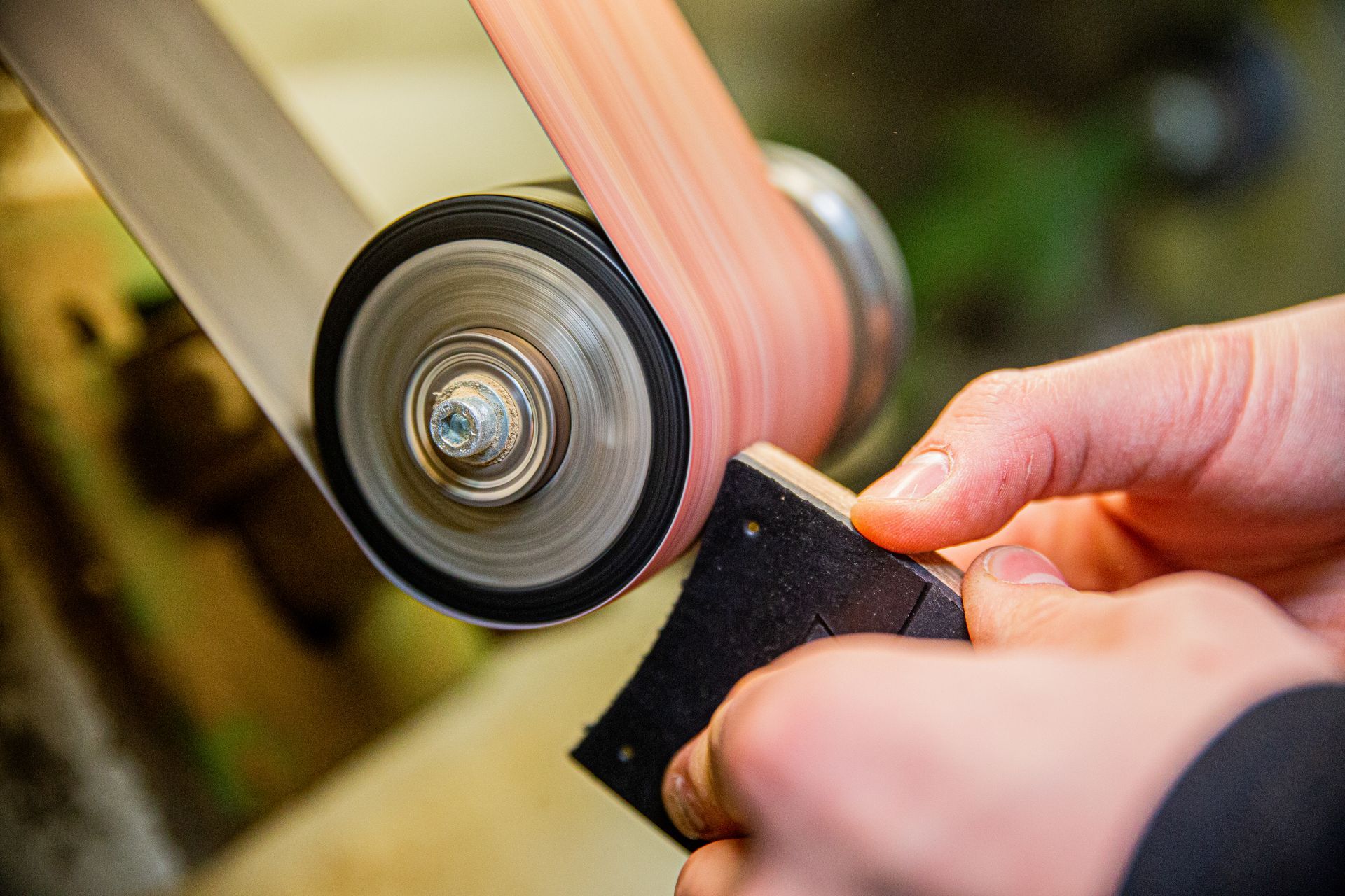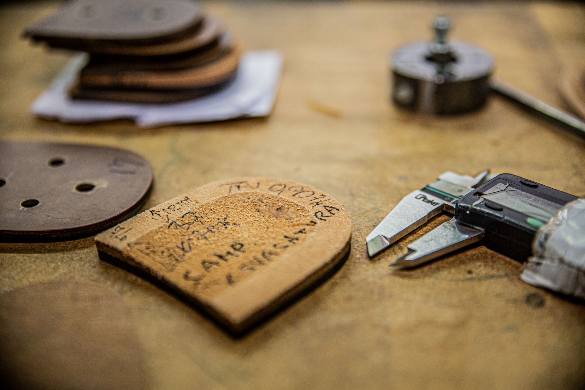 Si occupa, inoltre, di sagomatura delle suole e di applicare ogni tipo di sottotacco, a partire dai più economici, come quelli in cuoio/coria, fino ai più costosi, come quelli in cuoio/gomma.