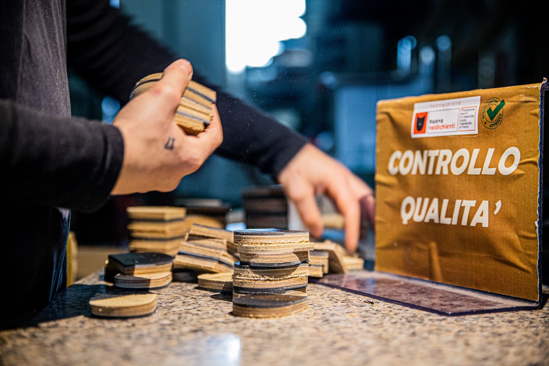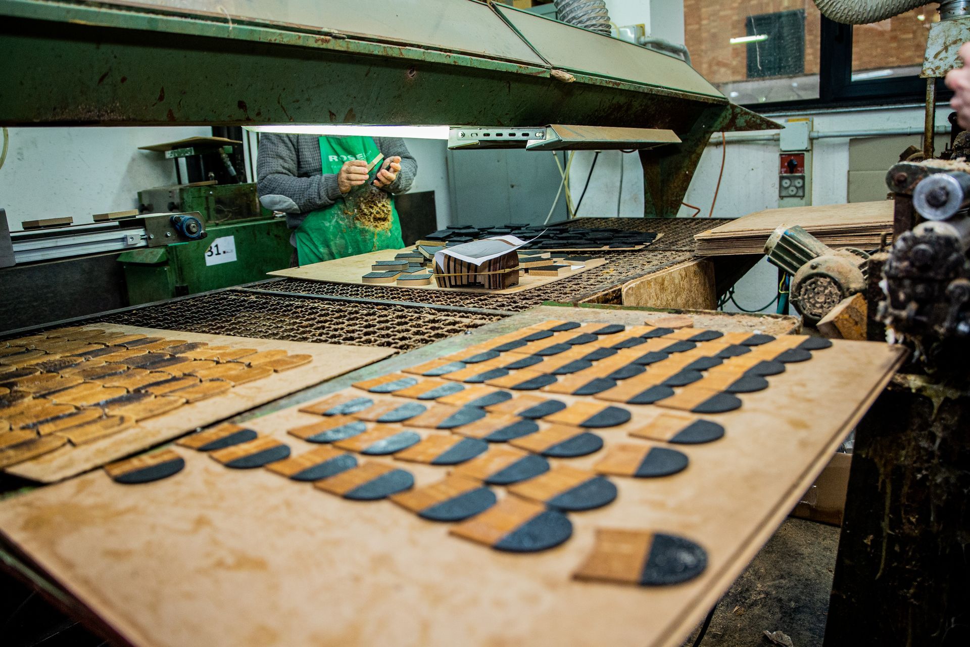 produzione tacchi in mansonite, cuoio rigenerato e micro